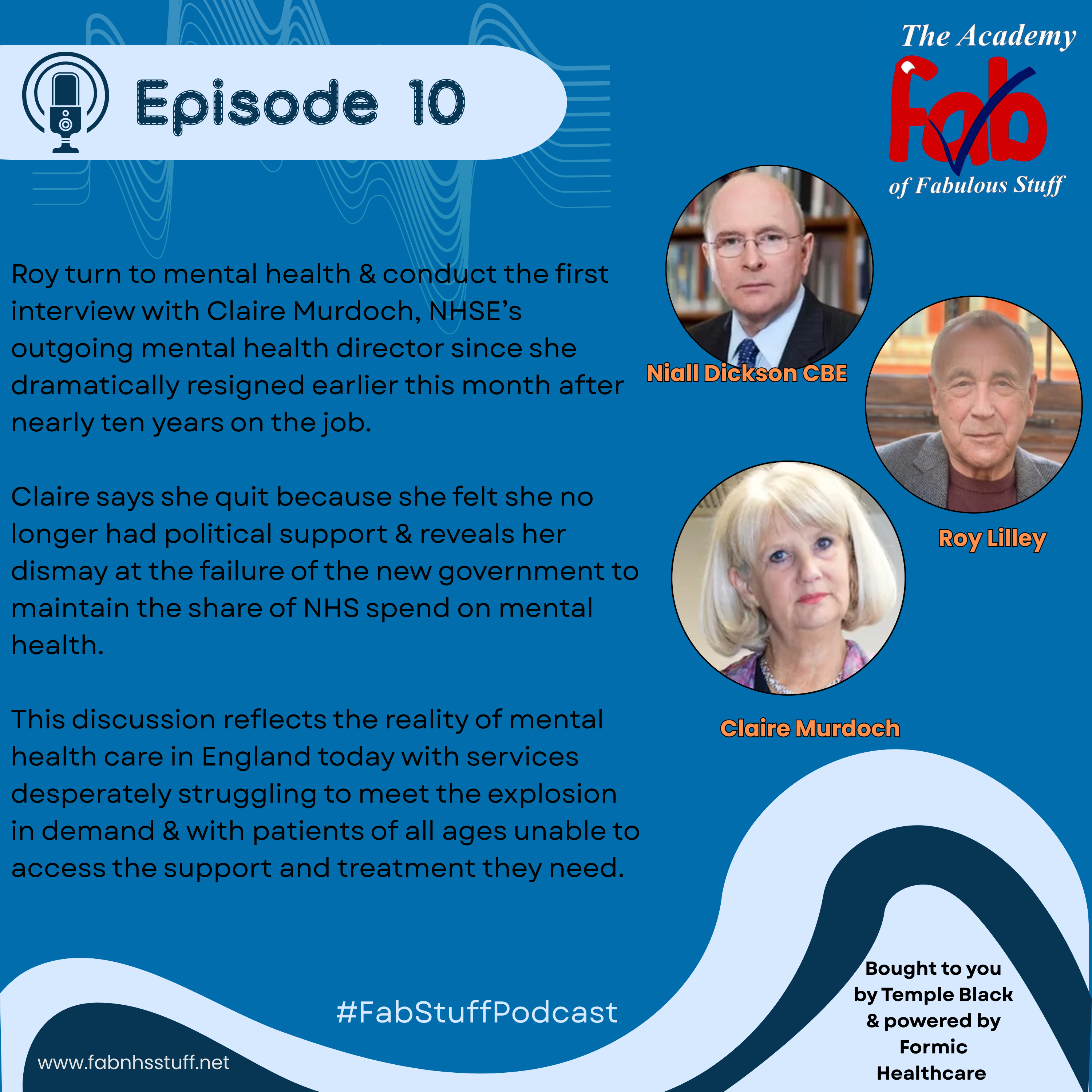 Niall and Roy turn to mental health & conduct the first interview with Claire Murdoch, NHSE's outgoing mental health director since she dramatically resigned earlier this month after nearly ten years on the job.