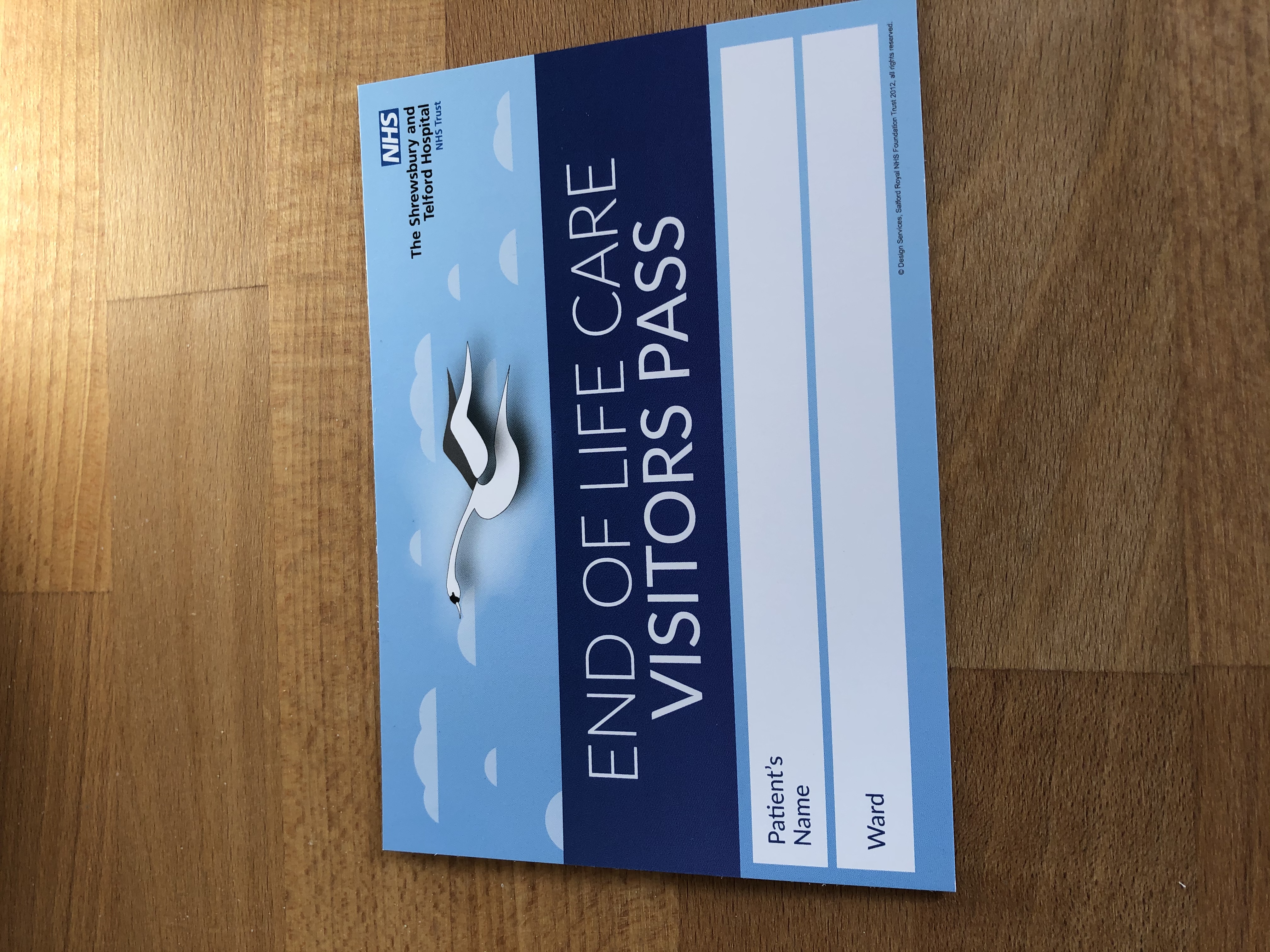 We have also started to put 1 pass in each swan memory box and more can be obtained from ward staff and the Swan EOLC Service.