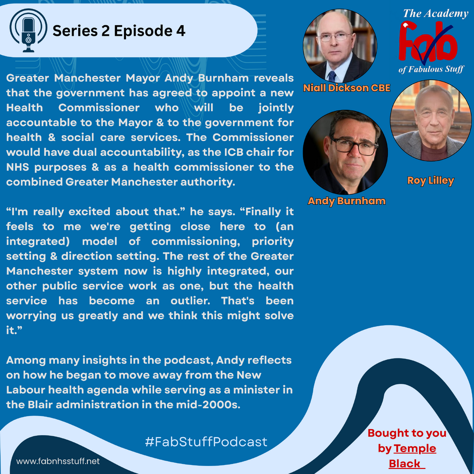 In the latest Podcast, Greater Manchester Mayor Andy Burnham reveals that the government has agreed to appoint a new Health Commissioner who will be jointly accountable to the Mayor and to the government for health and social care services.