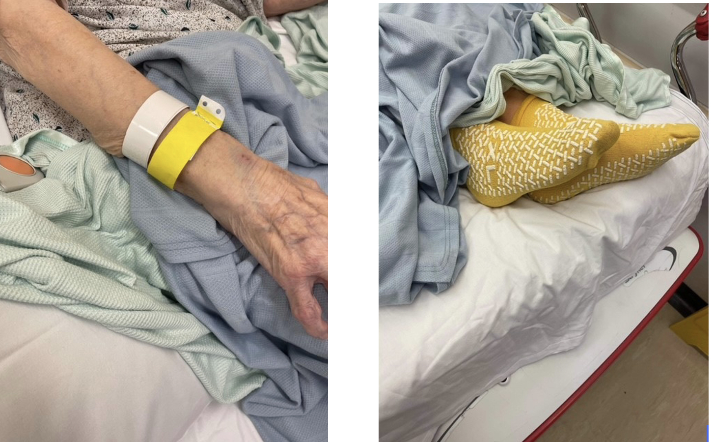 Those patients assessed to be at risk, are issued with yellow wristband and yellow non-slip socks to help them be easily identifiable, and patients bed / trolley spaces are identified with a yellow sign, to highlight to the staff that this patient is high risk, without breaching the patients privacy & dignity within the department.