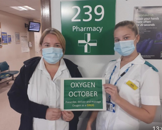 Oxygen October is a QI project devised by the Respiratory Clinical Nurse Specialist Team (Project leads Catherine Firmstone, Matron Anna Harding) which aims to improve oxygen prescribing standard (BTS indicators) throughout the host organisation.