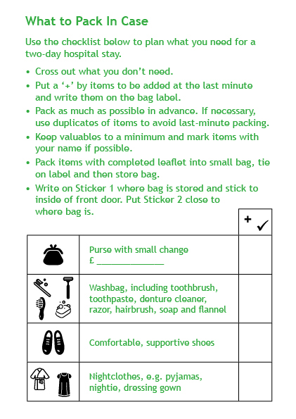For people, especially those vulnerable or living alone, to have a bag packed in case of sudden hospital admission so that they are able to communicate, function and participate in timely rehabilitation.