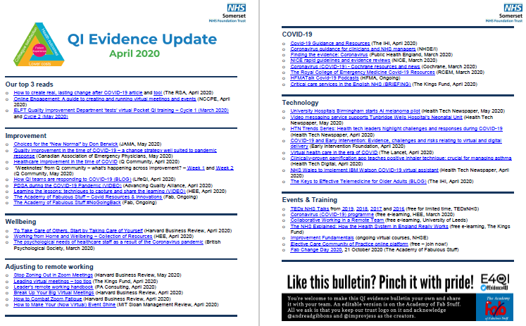 A summary of the must read research and updates for anyone working in QI - in less than 2 sides of A4!