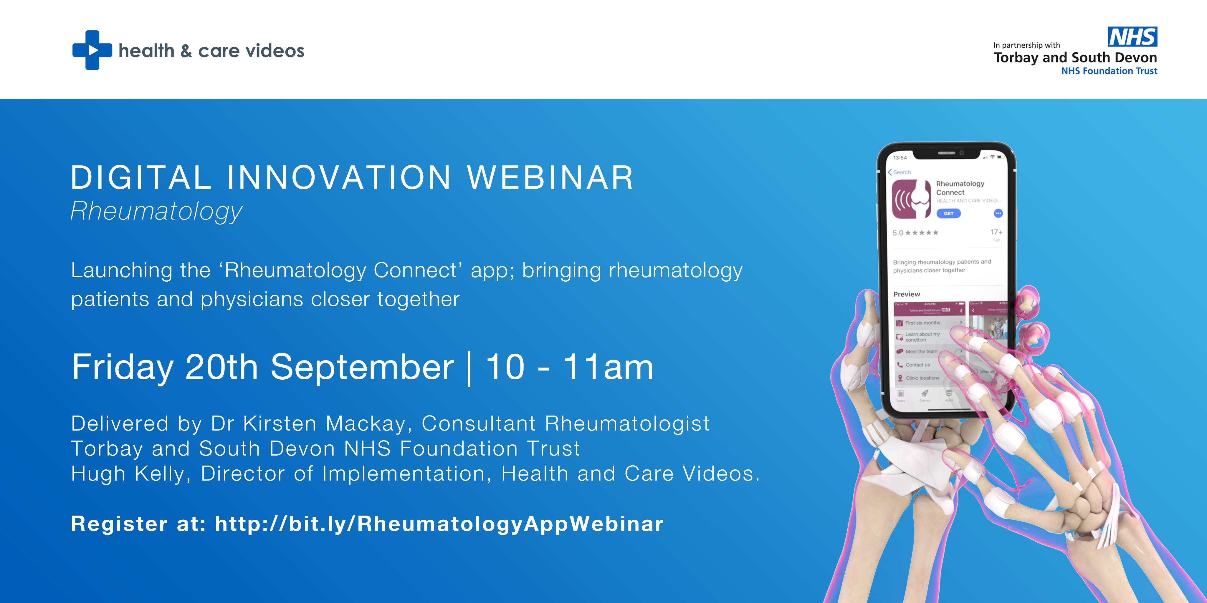 Health and Care Videos are hosting a webinar on 20th September with Dr. Kirsten Mackay, Rheumatology Consultant at Torbay and South Devon NHS Foundation Trust and Hugh Kelly, Director of Implementation at Health and Care Videos.