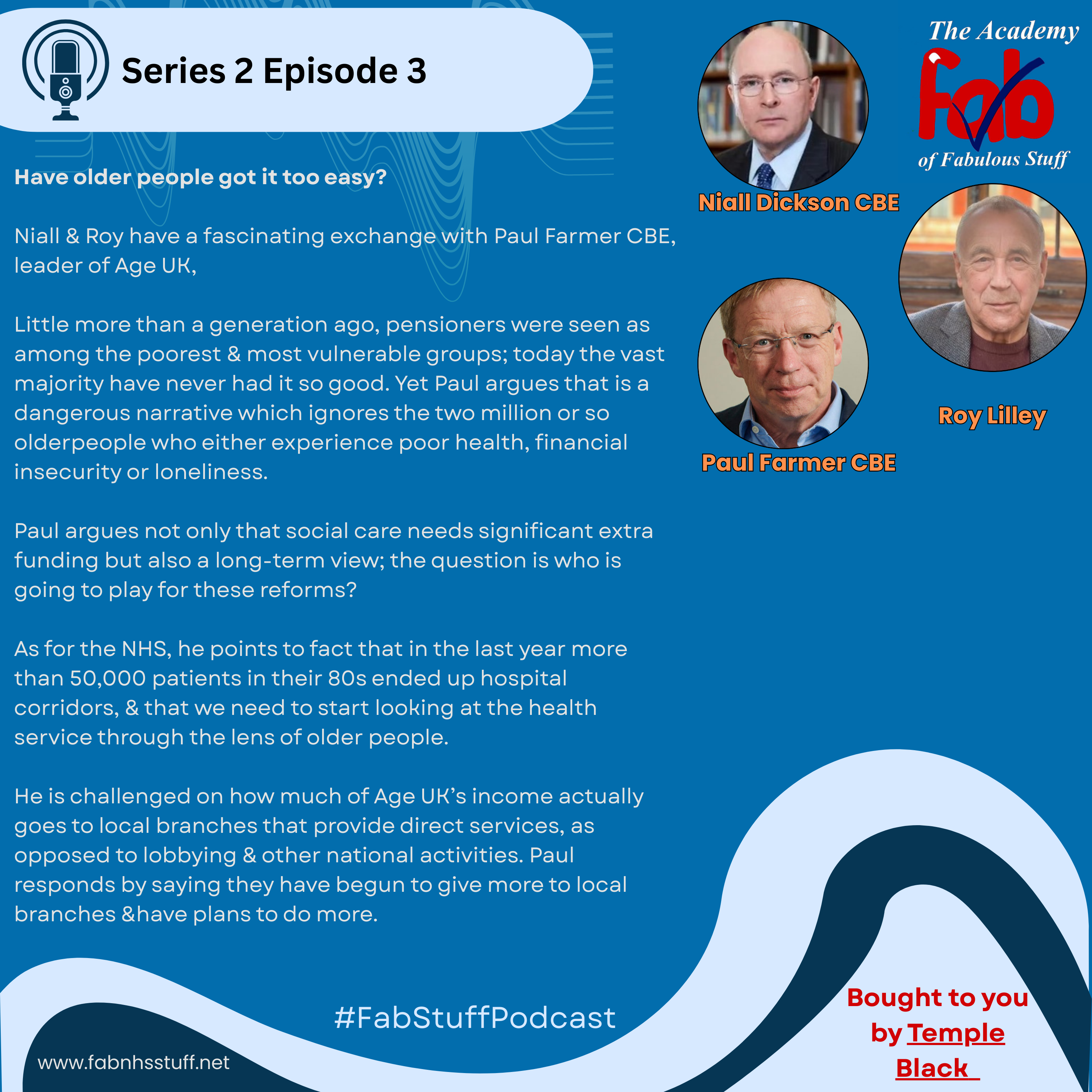 In their latest podcast, Niall and Roy have a fascinating exchange with Paul Farmer CBE, the leader of Age UK, Britain’s largest charity campaigning and providing services for older people.