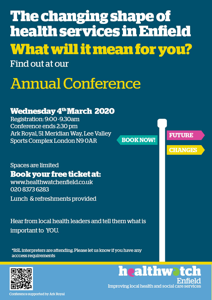 You can book your free ticket on our website: www.healthwatchenfield.co.uk or by calling us on 020 8373 6283 and let us know if you have any access requirements.