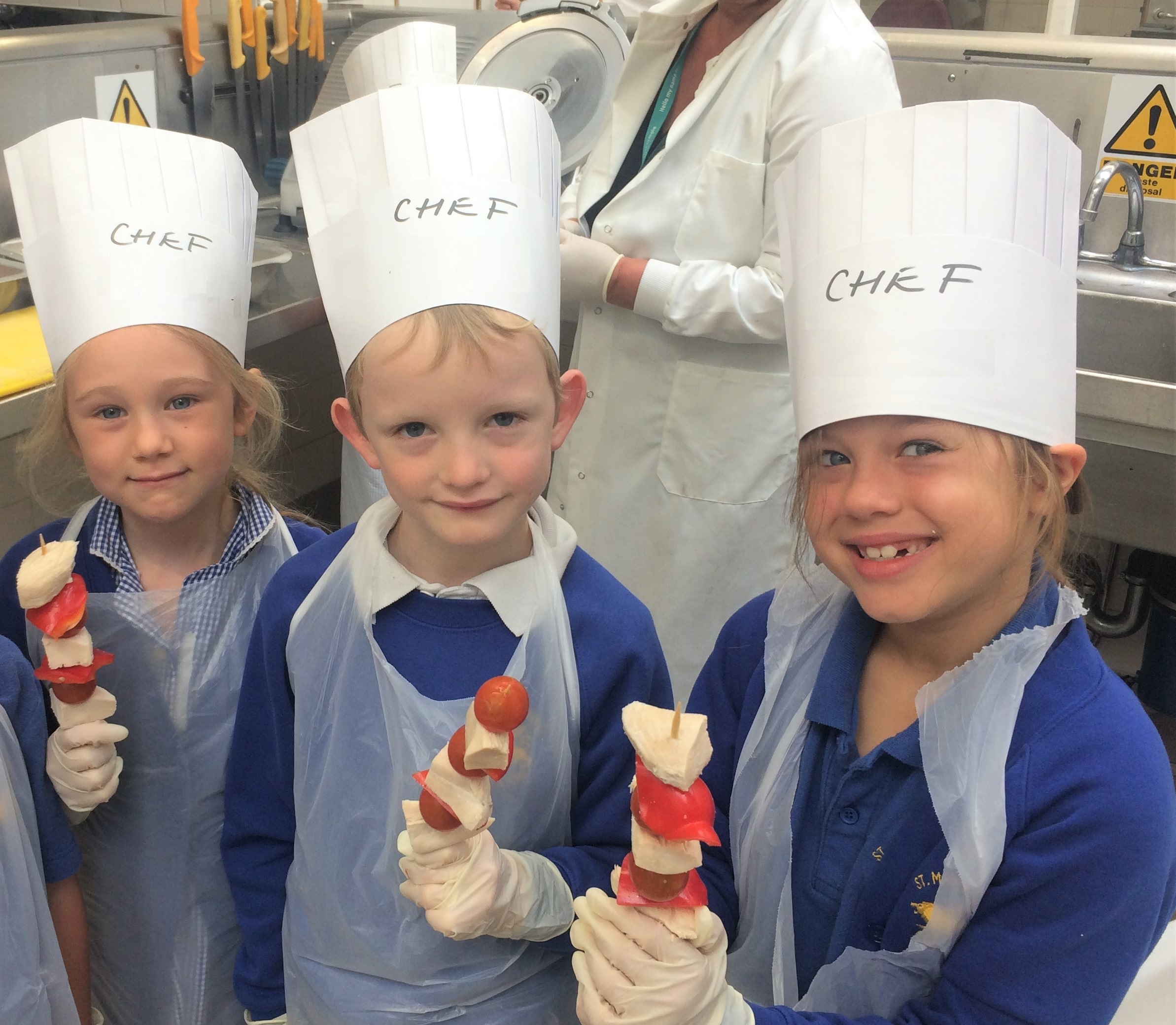 The Year 2 students prepared and cooked a variety of healthy dishes, with help from the catering team, including homemade flatbread pizzas and chicken, tomato and red pepper kebabs and granola pots. Food made on the day was served to staff, volunteers and visitors.