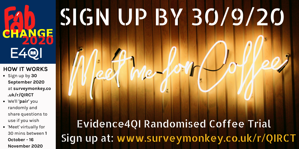 The Evidence 4 Quality Improvement and Fab teams would like to invite you to celebrate #FabChange20 by joining in our QI themed Randomised Coffee Trial during the month of October.